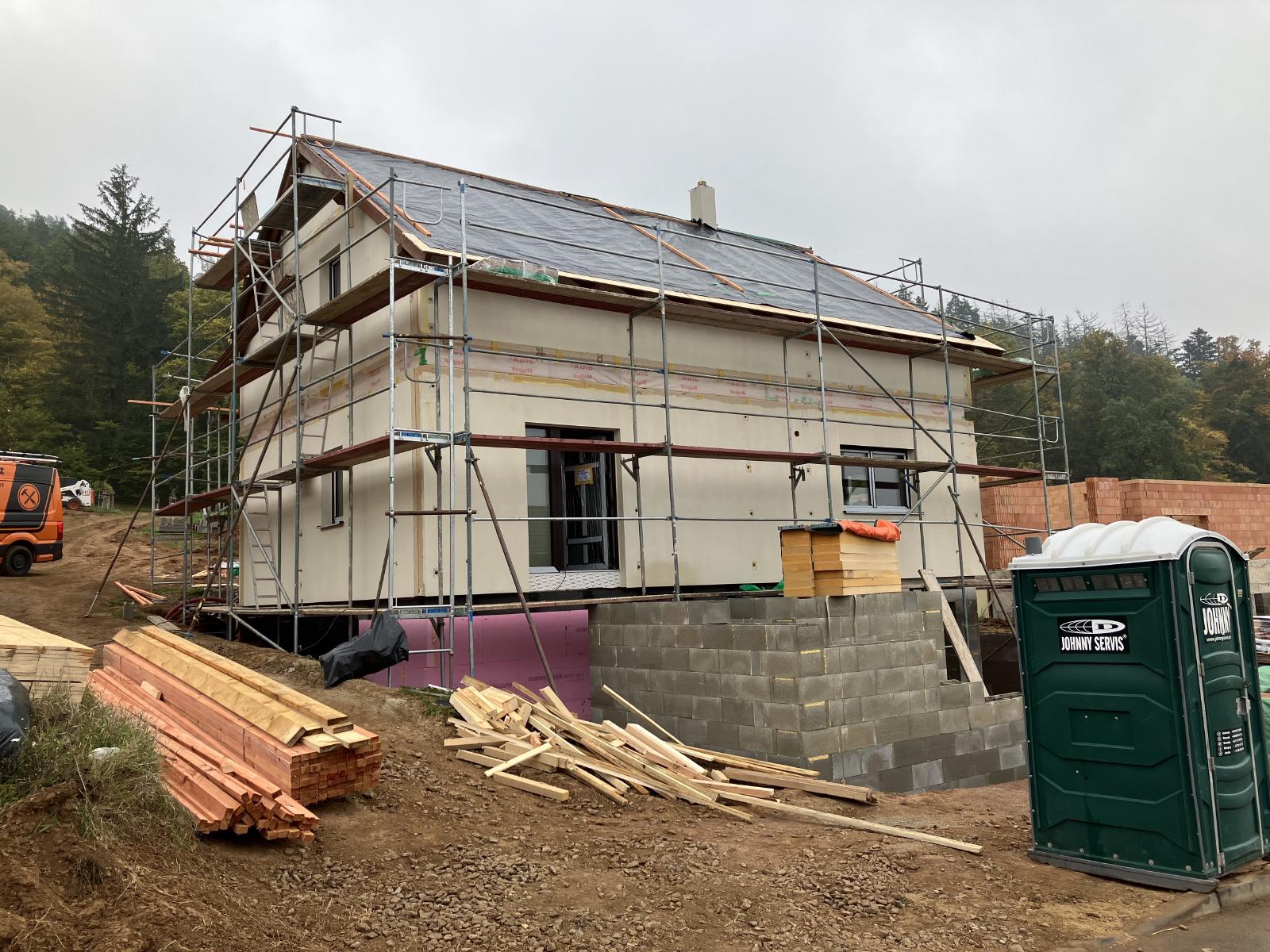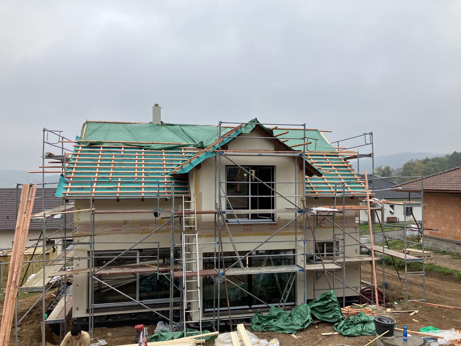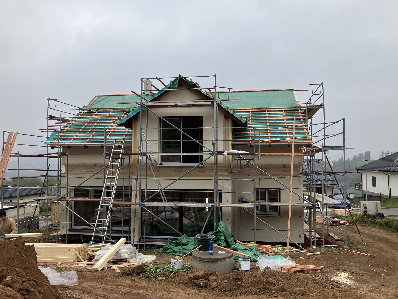 Despite the rain, they’re going ahead with the roofing. It’s sort of hard