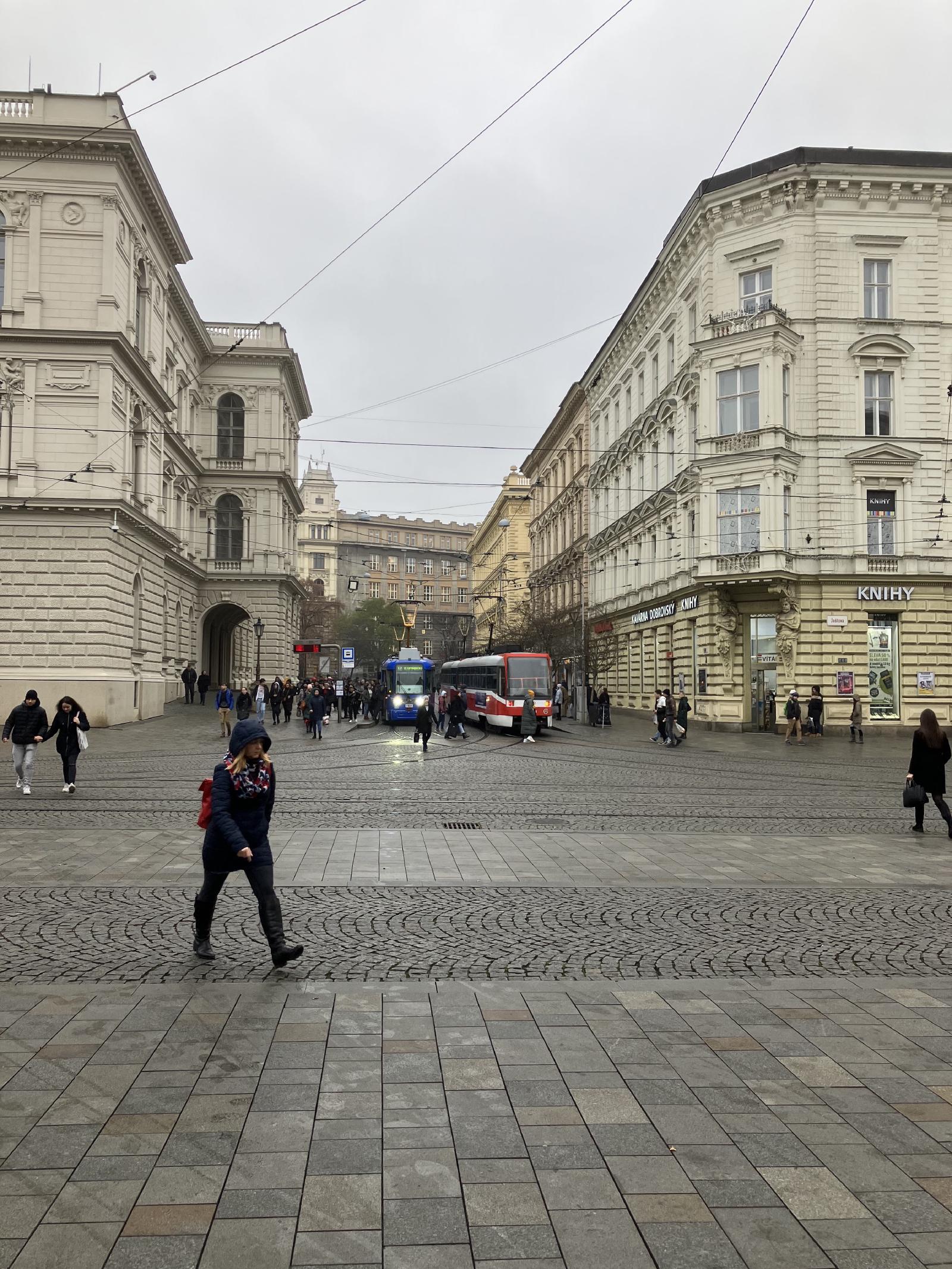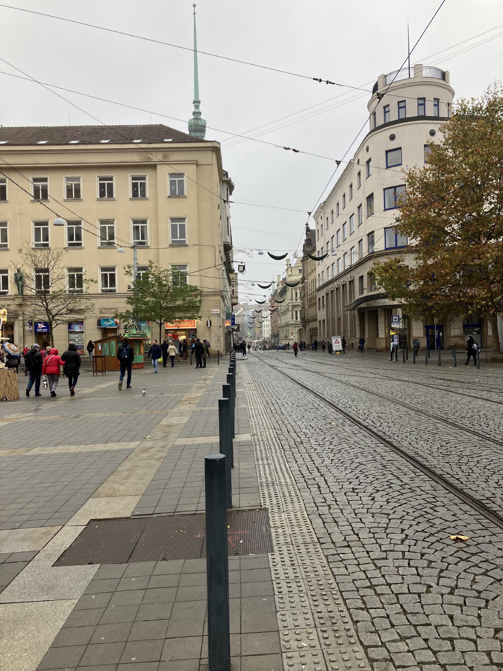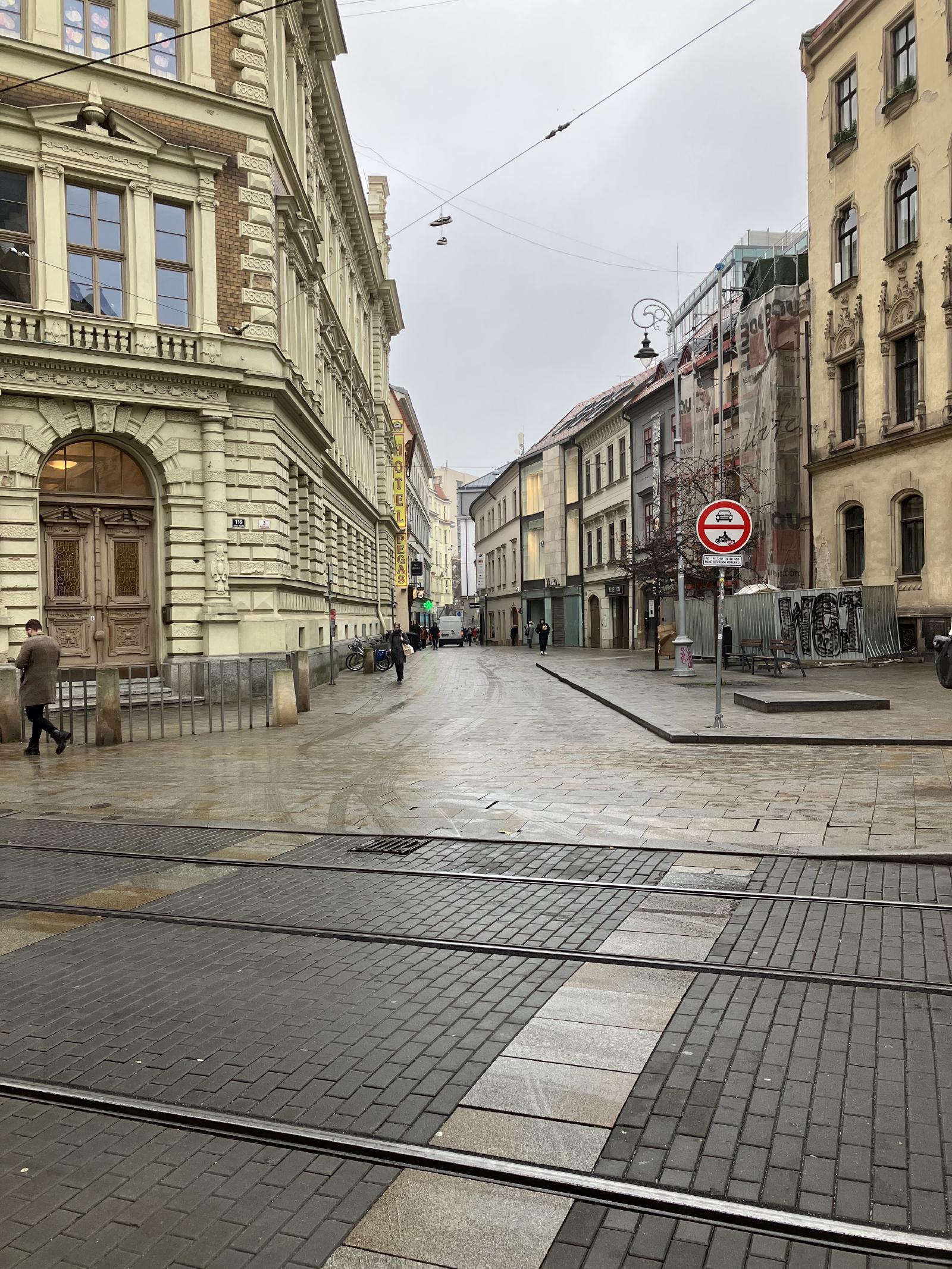 Moravské Náměstí is on the outer edge of the city center pedestrian zone.