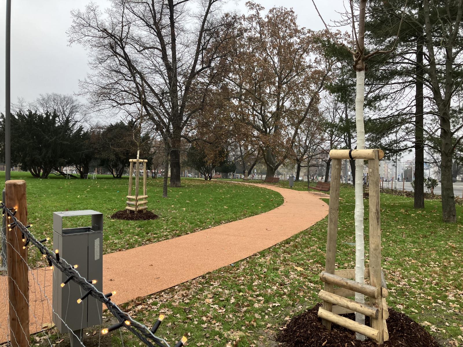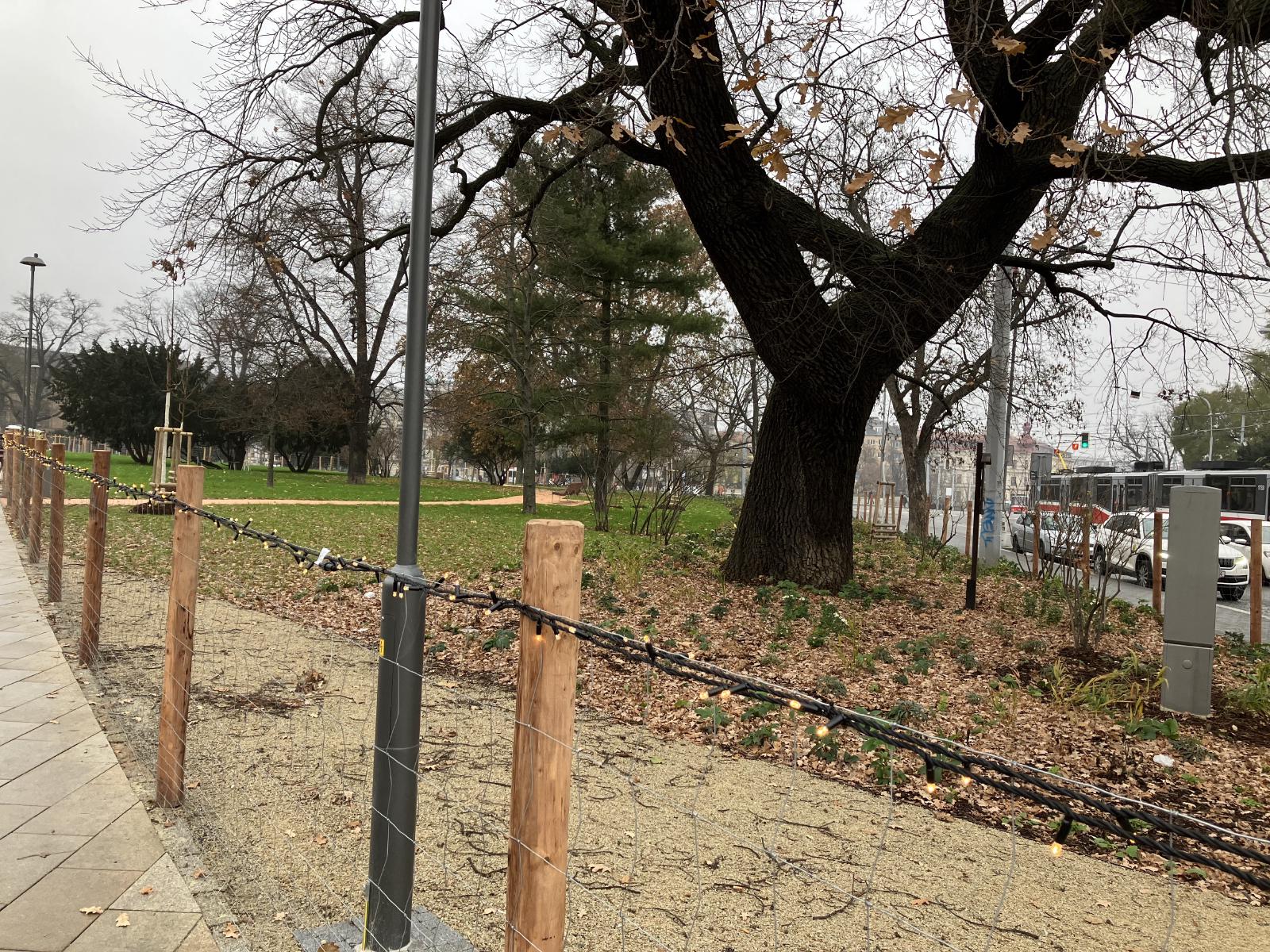 Currently, the green space is surrounded by fencing as they are waiting for the