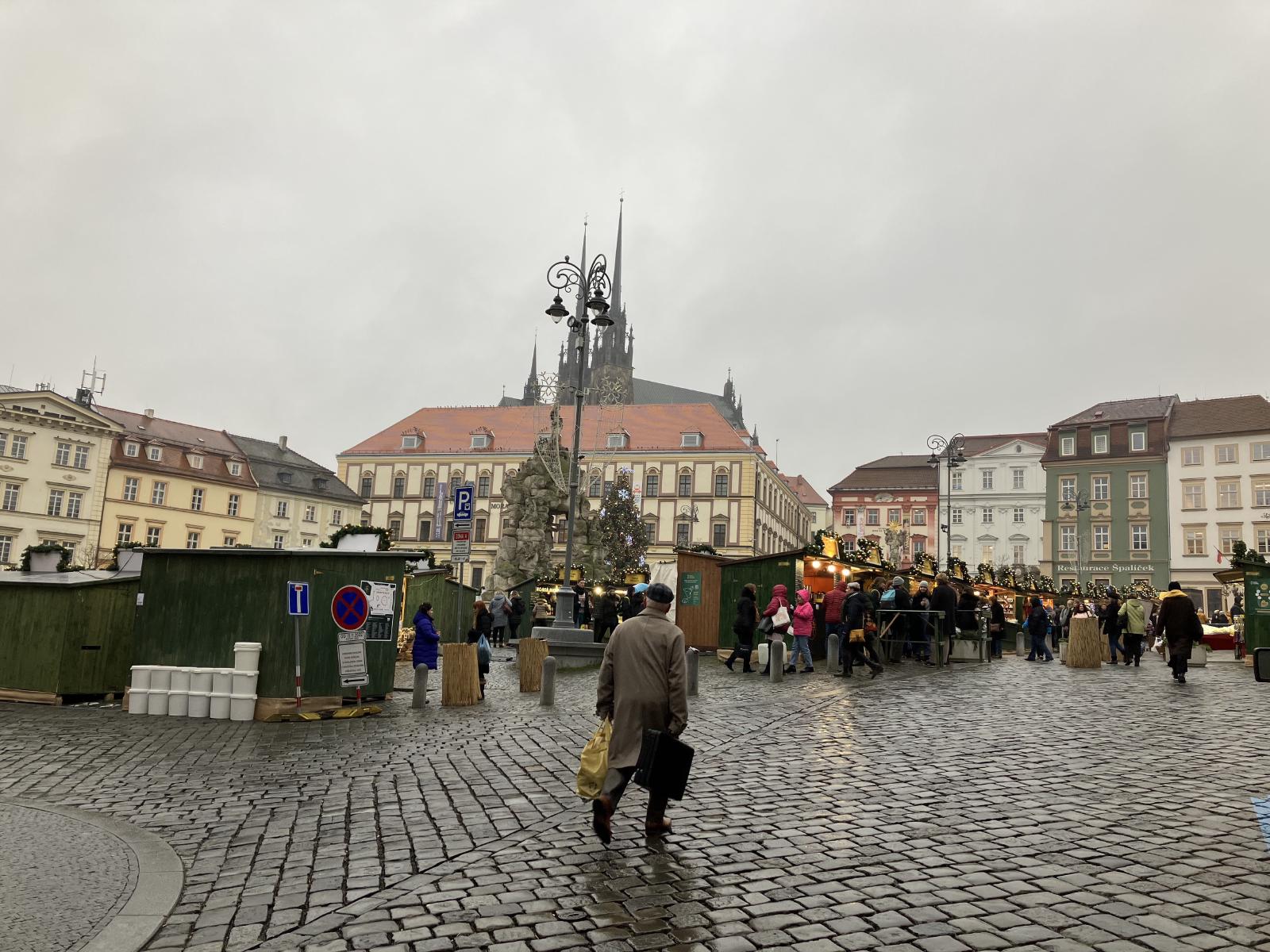 Behind Zelný Trh, you can see Brno’s cathedral, The Cathedral of Saints Peter and Paul.