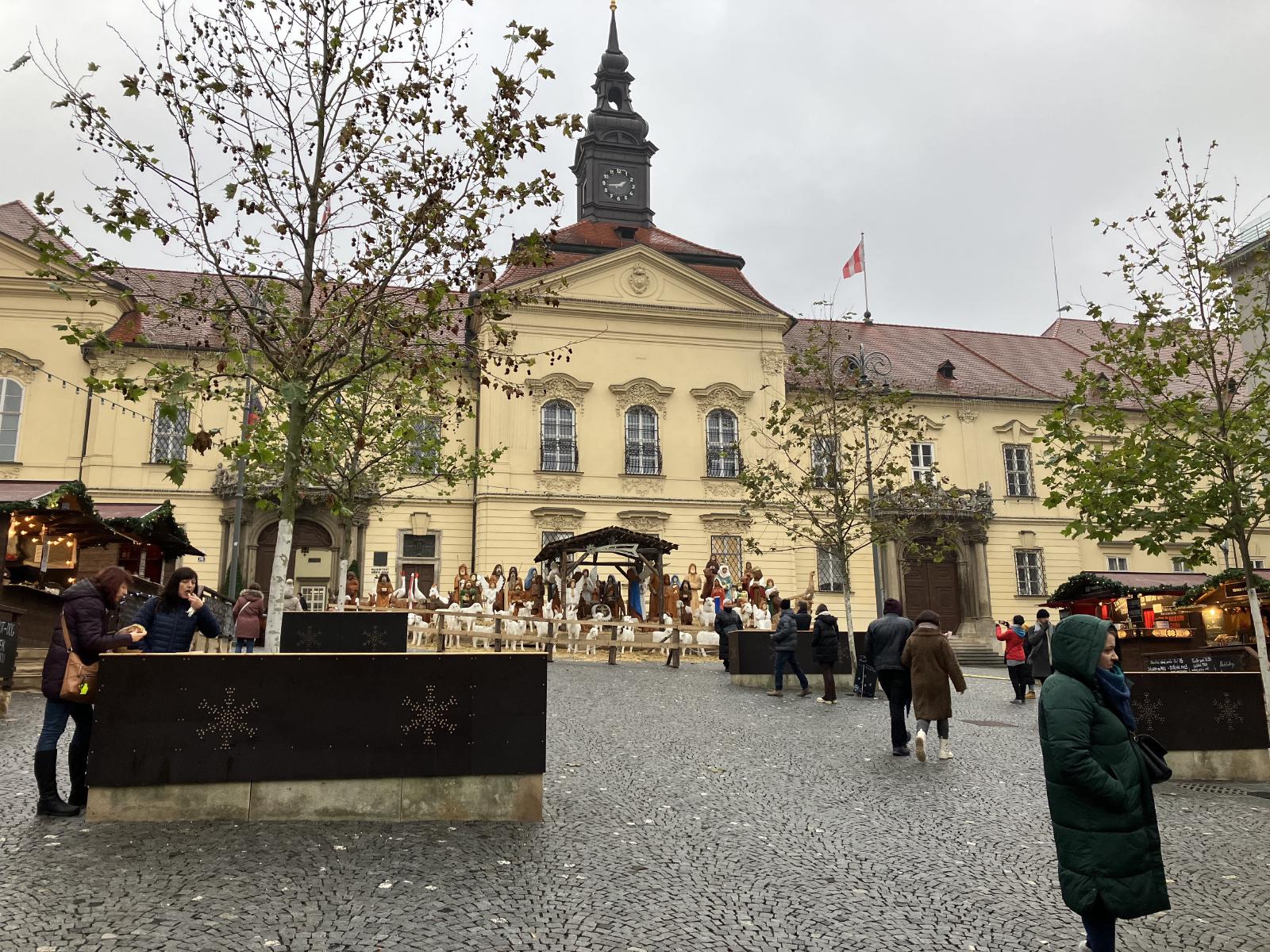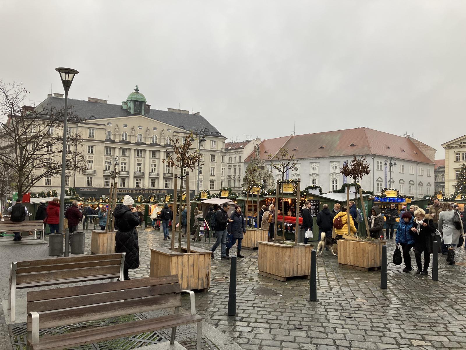 A short distance from Zelný Trh is Dominikánské náměstí (Dominican Square) which is today home to the Brno Nativity Scene at Christmas time. The square was completely reconstructed during 2018 to what you see today. Prior to that time it was used as a fish market in the 13th and 14th centuries and more recently as gardens for the church on that square and even later for parking. The 2018 reconstruction removed the parking and turned it back into a more traditional open market style square.
