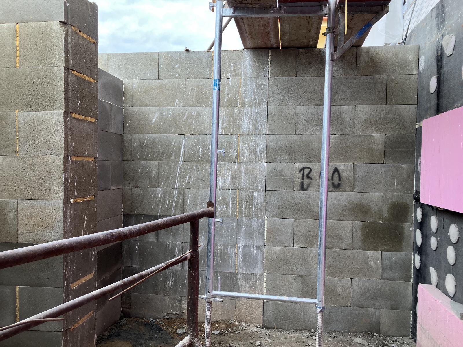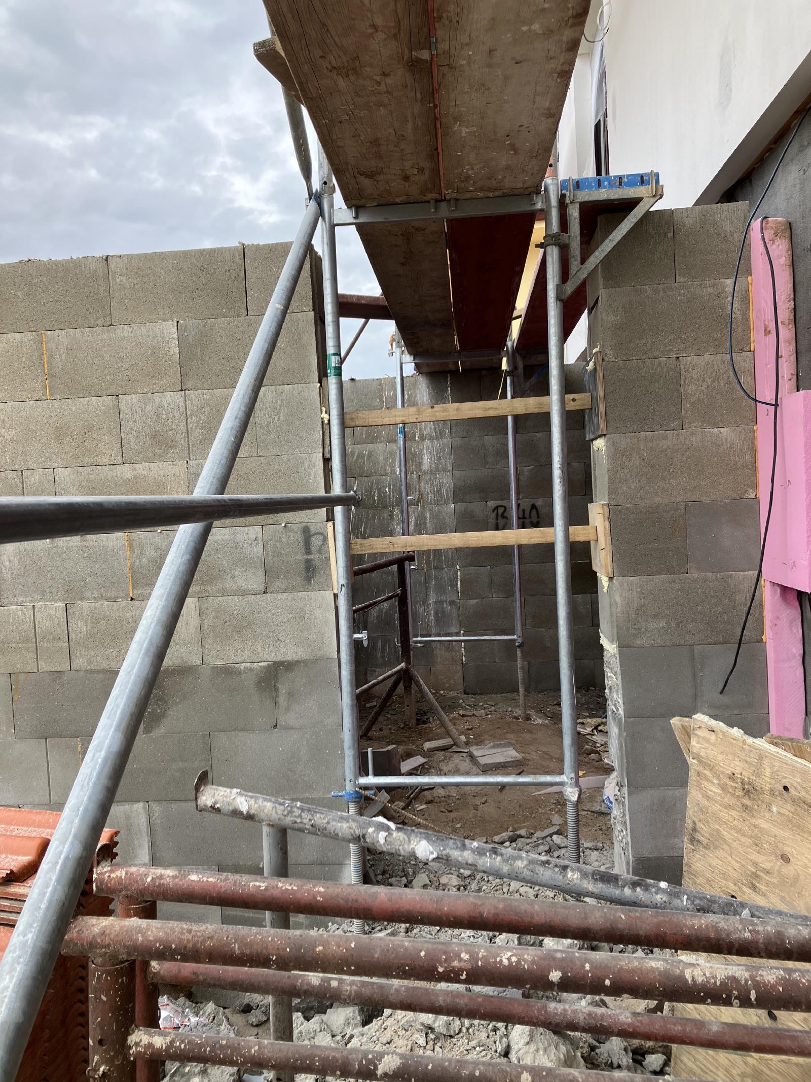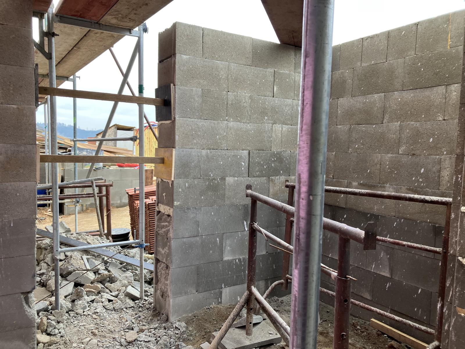 Saša agreed however and immediately started removing the concrete blocks for the doorway. A small wall was built to finish off the space and also the gap that had been unfinished between the stairway area and house. We also changed things a little bit and decided that since we’re going to have that storage room, we would skip the planter area next to the front door and instead have it tiled, put up some trees or bushy type things in planters and make it a nice sitting area. Since this is a completely new plan, we have given absolutely zero thought to what will go there. All we know is that it’s west-facing so doesn’t get a ton of sun and will need some things that are pretty shade tolerant.