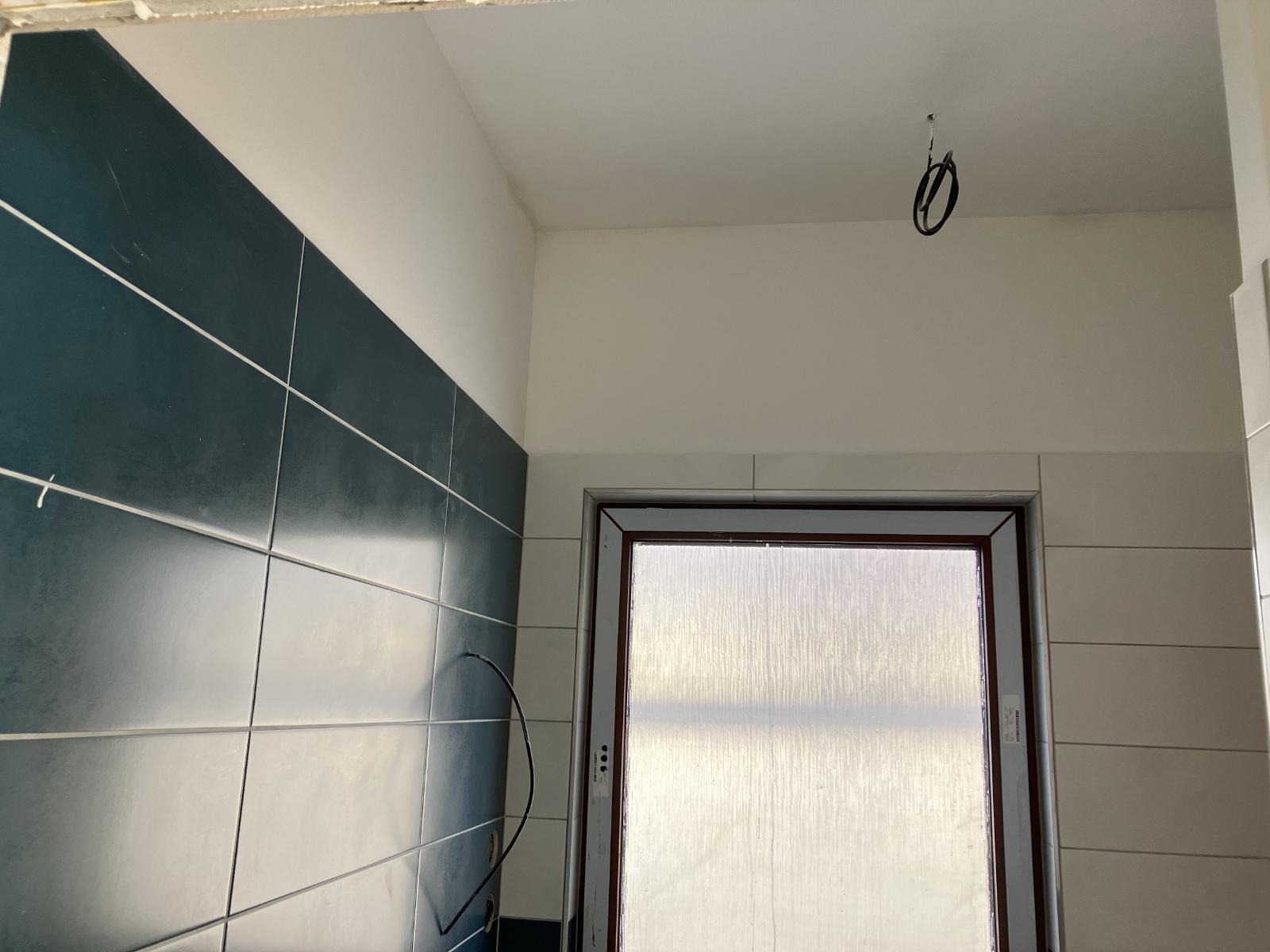 it’s done. We left the walls above the tiles in the bathrooms white.