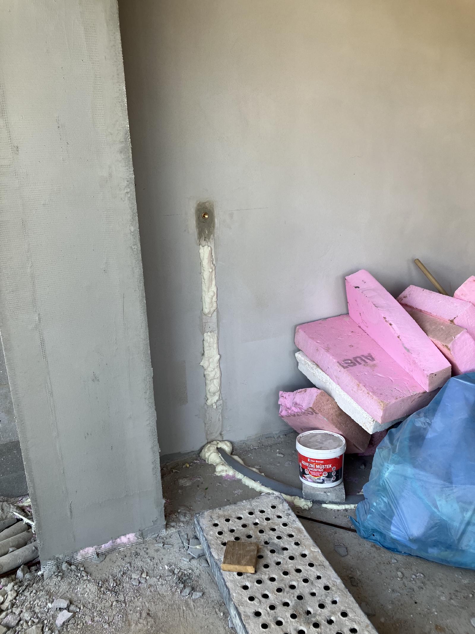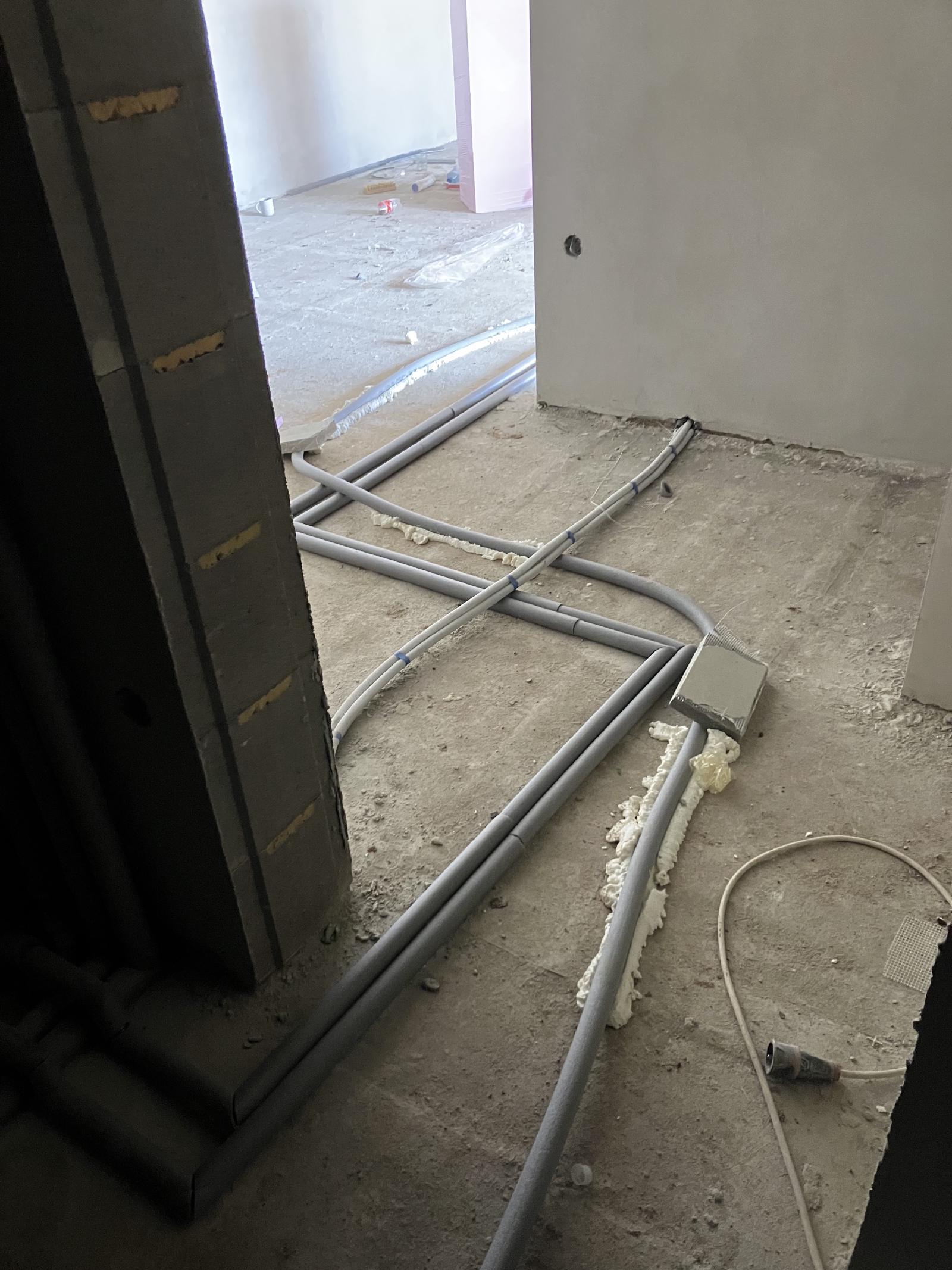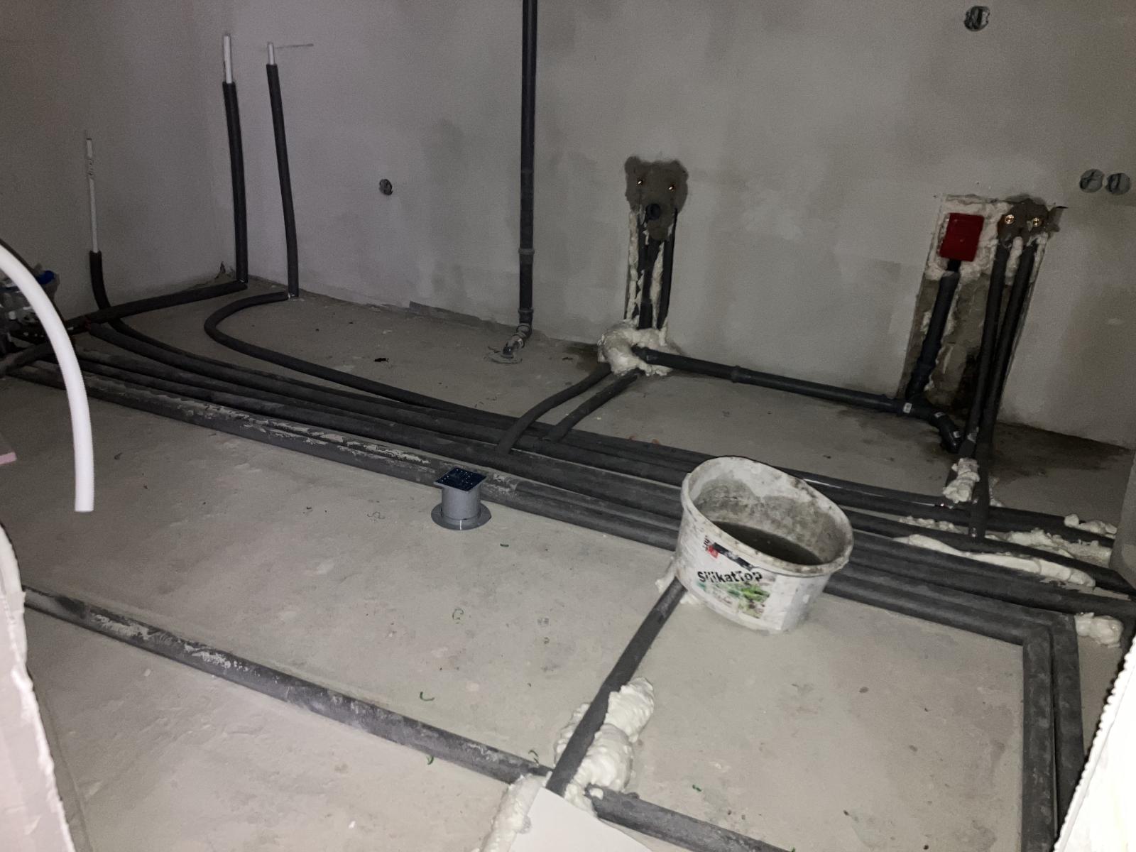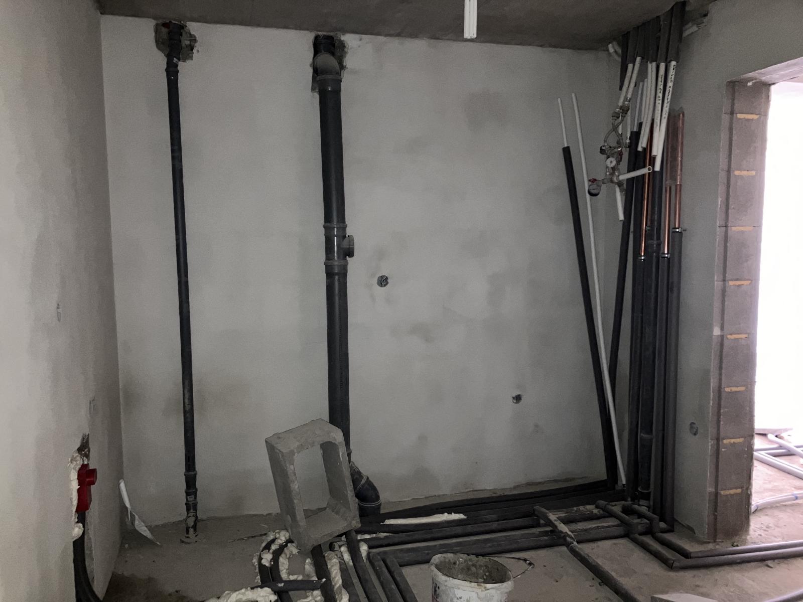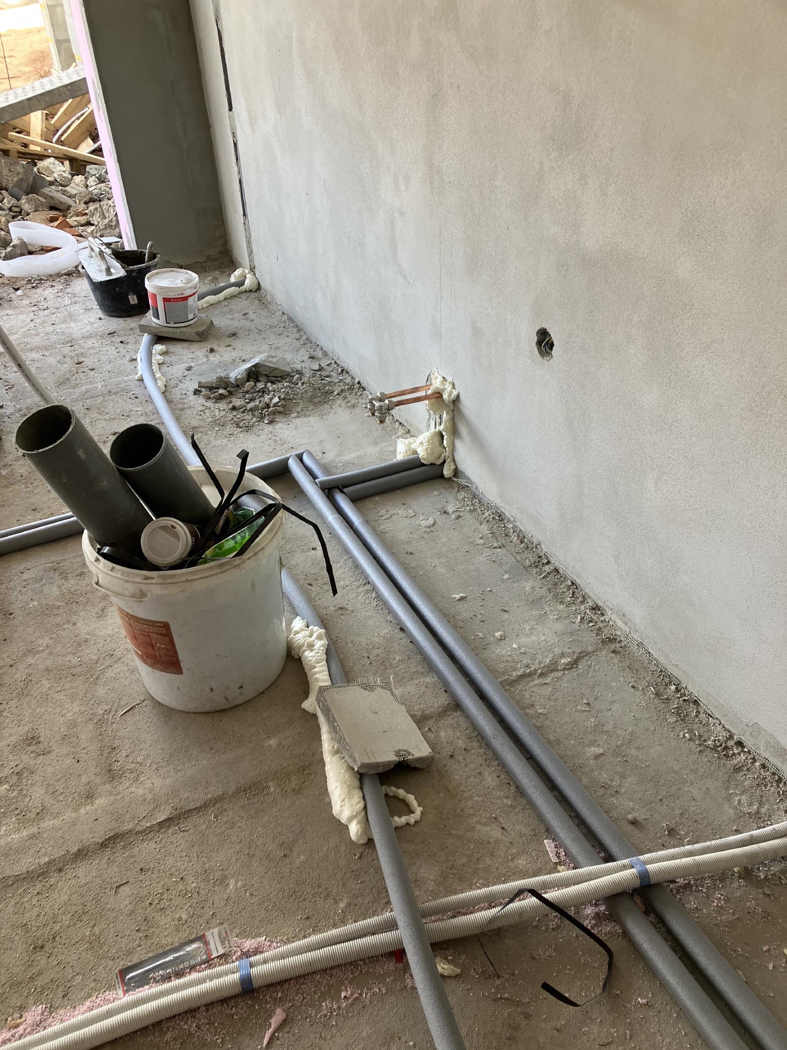 pipe connections for the upper floor including water to kitchen and bathrooms