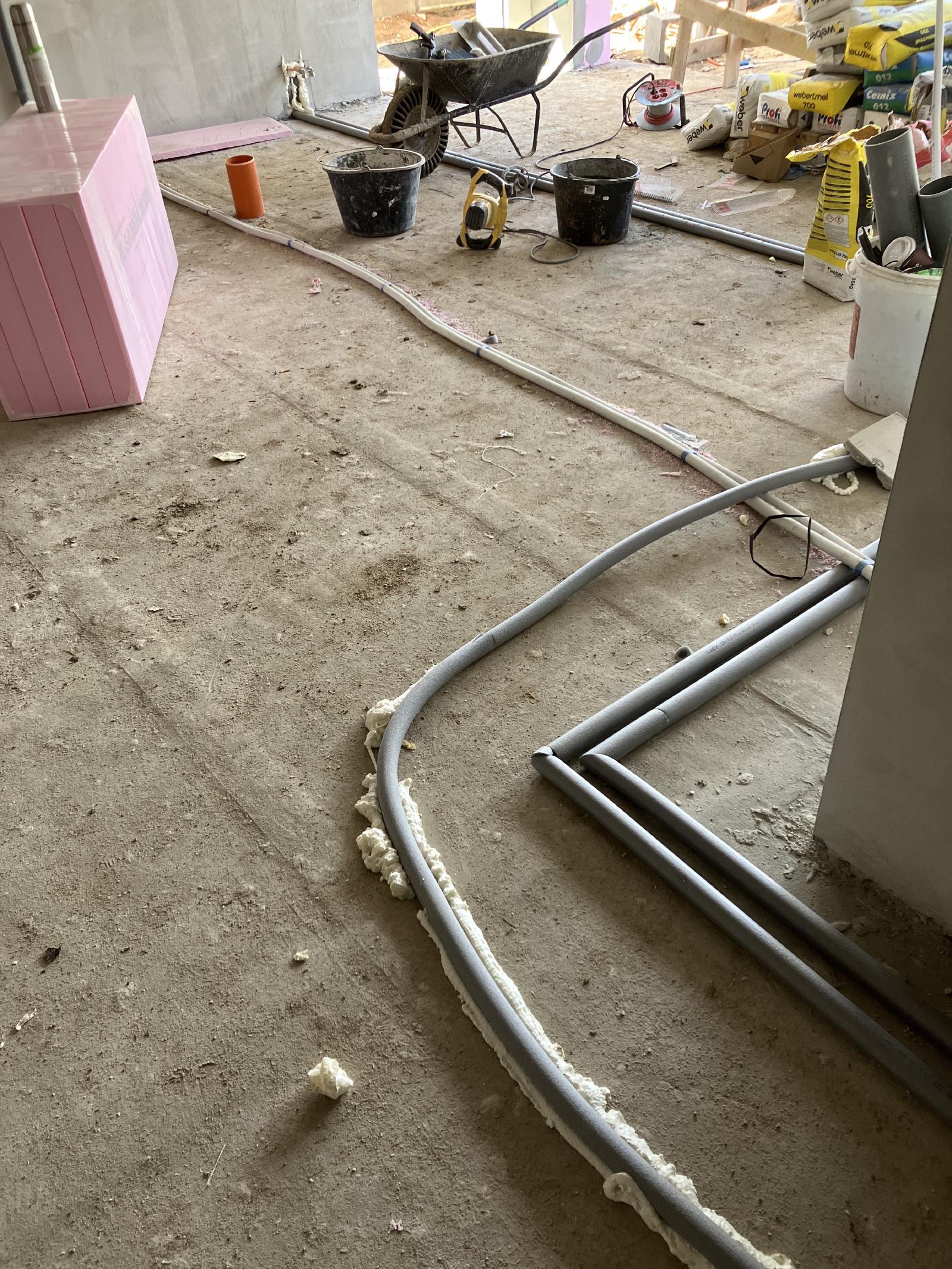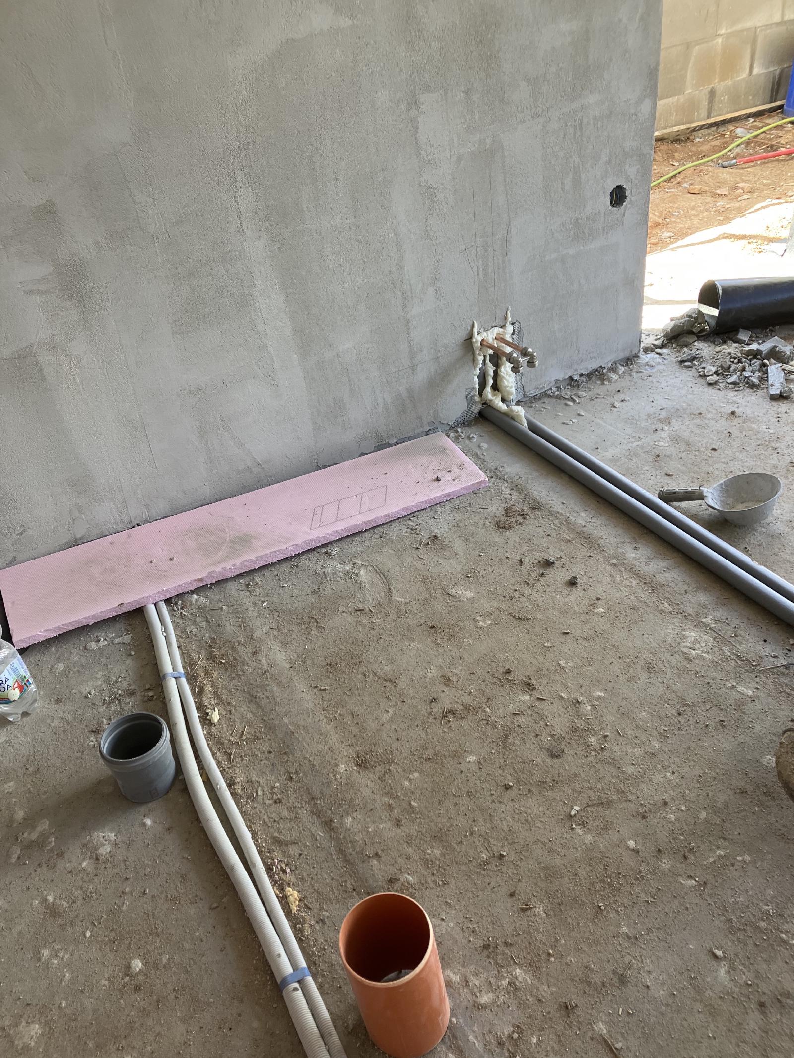 beneath the concrete soon. To the left are pipes that will eventually connect