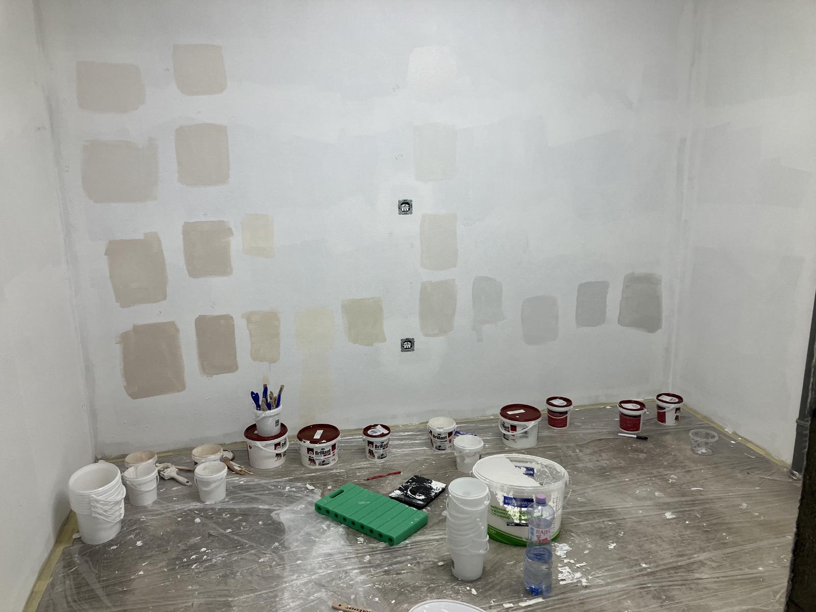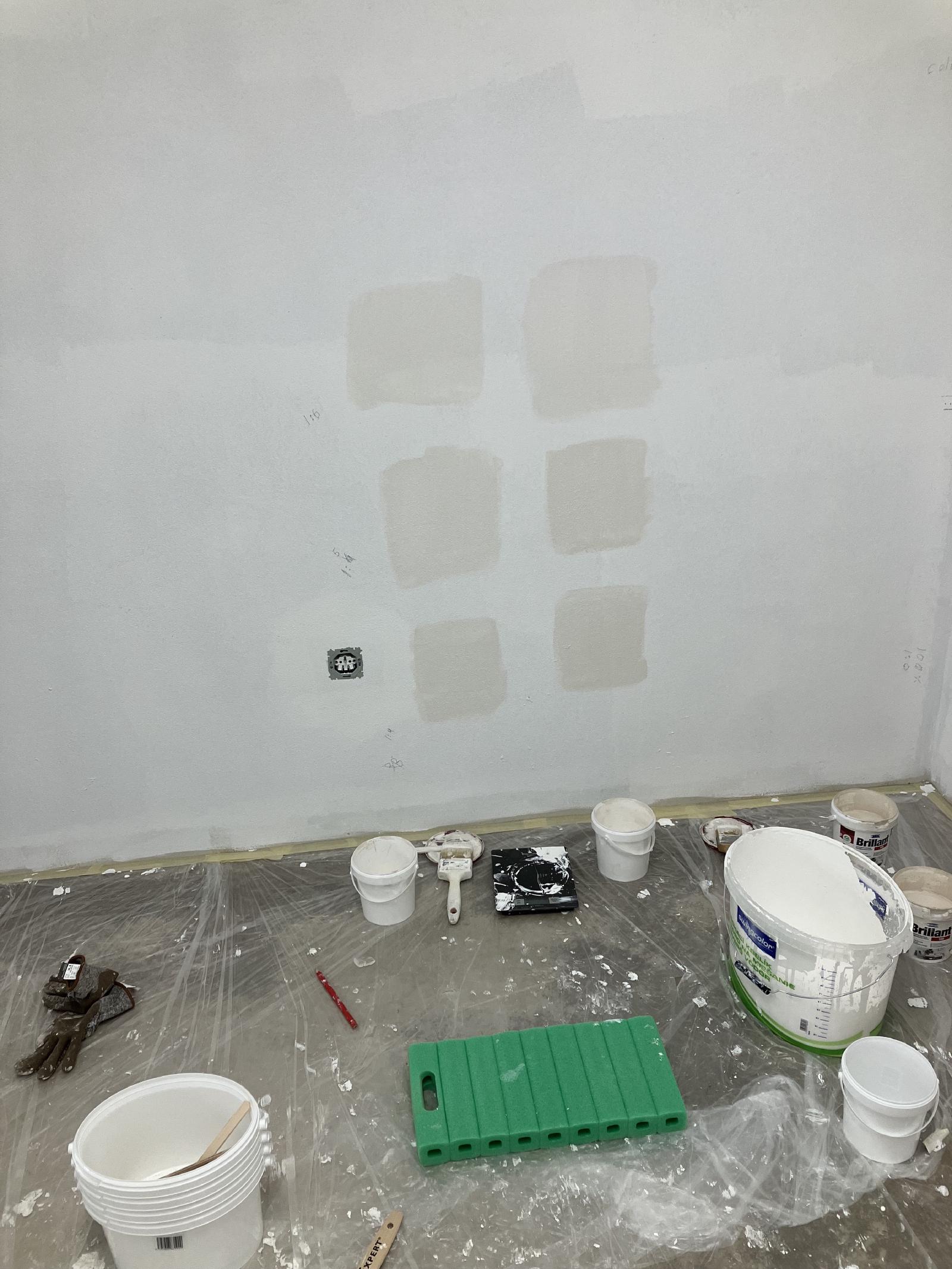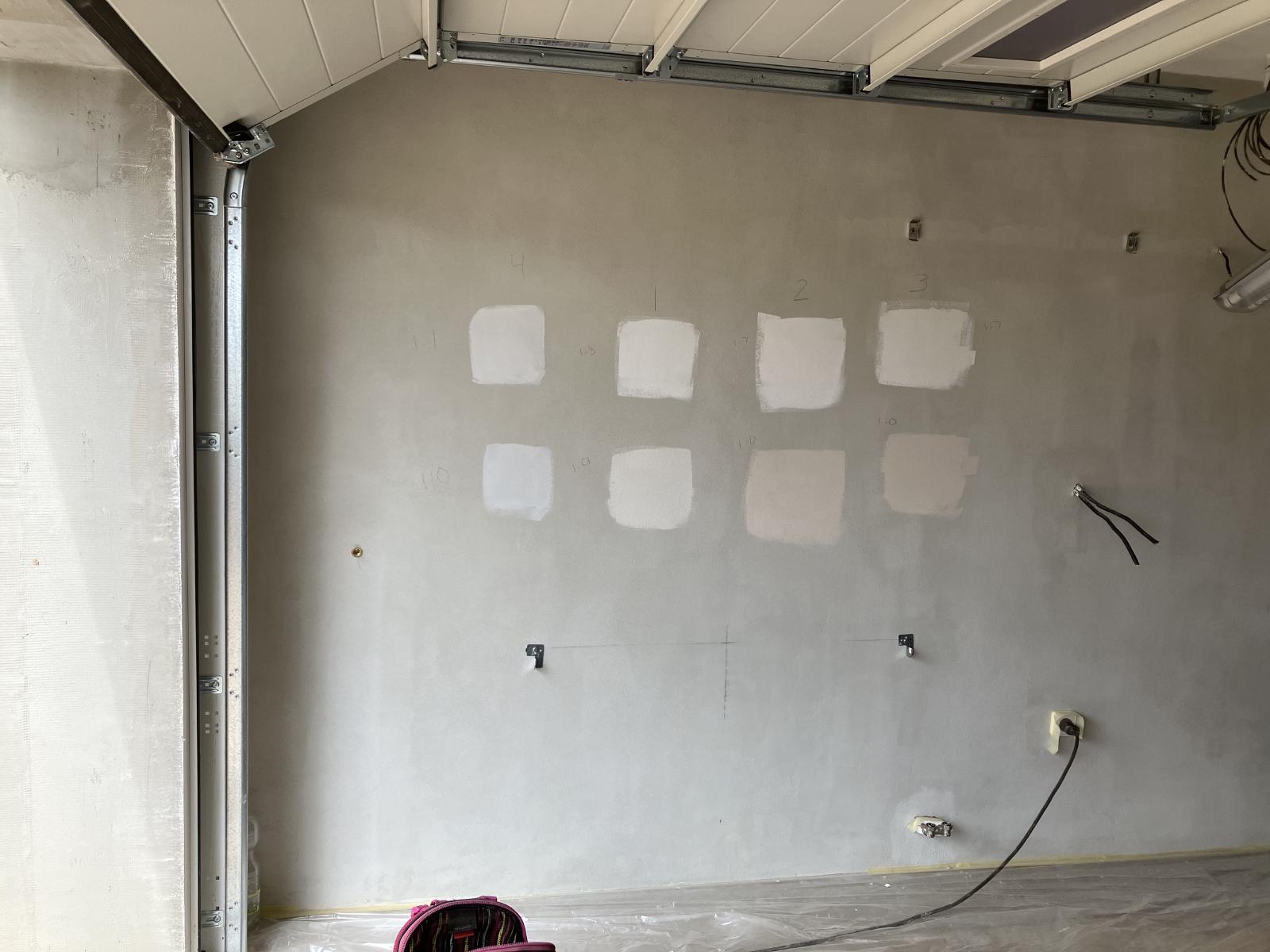 Lauren felt a bit like a mad scientist this week after a score of science experiments with finding the right wall colours for the basement/garage. The colour tone in the photos below are totally off but you get the idea. The bottom row here are the original colours, which were, for the most part, way too intense. So the experiments began in which each row above had an additional part of white added. Some colours were ruled out immediately and more on the way through. By the time she was done, she had a range of colours that were 3 parts white to 1 part colour all the way up to 7 parts white to one part colour. The colours really were way too intense. After narrowing that down, she then needed to paint the colours in different places in the garage owing to how differenc colours look in different light.