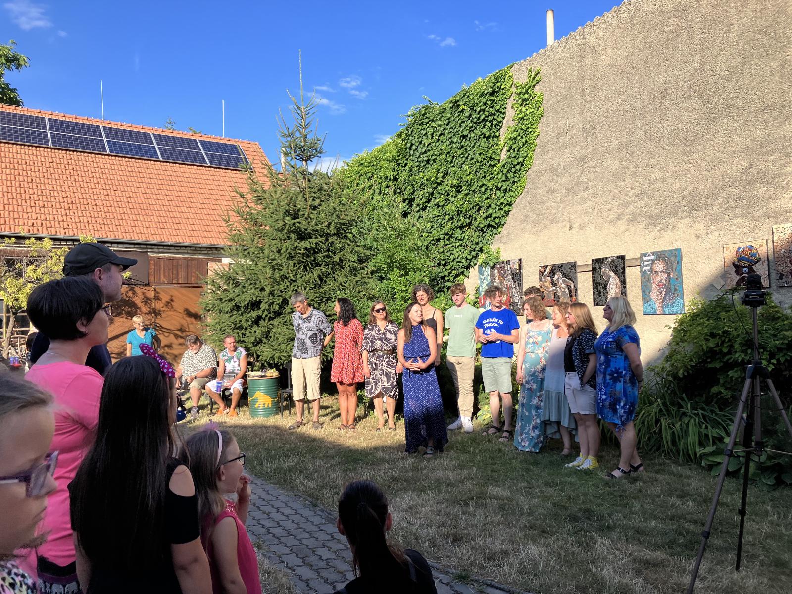 Lauren loves to experience everything Czech and so was excited to be invited to an art show opening with friends Ondra and Jitka on Friday night. Jitka’s colleague also makes and teaches mosaic-making and so this was an art show for that. She held it in her garden and Lauren was excited to see more examples of Czech living.