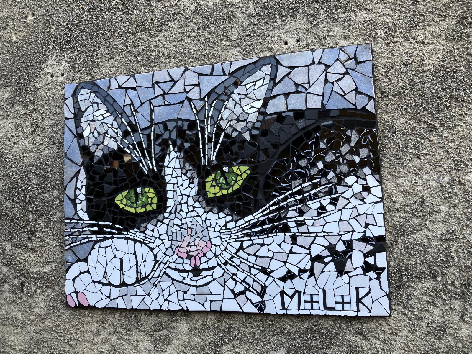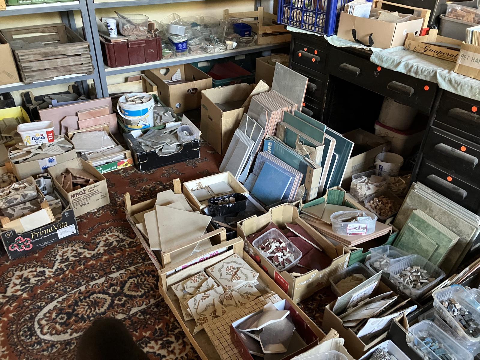 We got to see her collection of old tiles that she uses to make the mosaics.