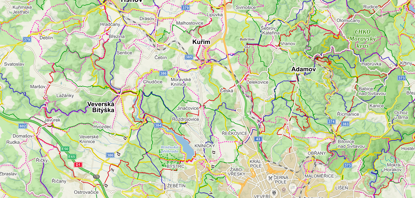 Czech republic is covered with a massive network of hiking and biking trails. There is nothing that even remotely compares to it in the US. See this image below? Every line that you see that is red, blue, green or pink is a biking or hiking path. While some of the bike paths follow roads, there are so many that wind their way through fields or forests providing the most amazing views. I never know when I ride what I will find around the next bend.