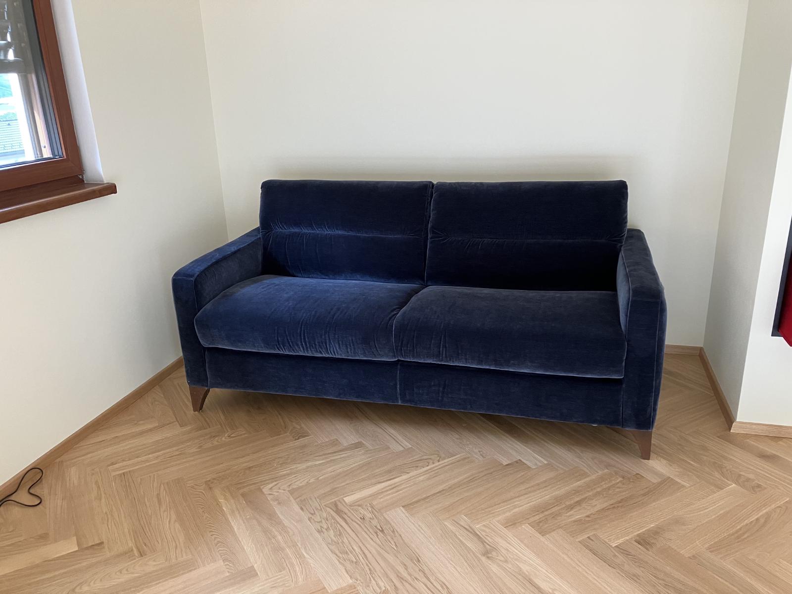 The main problem with buying furniture before a space actually exists is that you run the risk that it won’t end up working out the way you wanted to. This is exactly what happened in the case of our first couch. Our original plan was to have a built-in sleeping option in every room (guest bedroom, the sewing room, Stano’s office and obviously, the master bedroom) but once the rooms came together with paint, doors, carpet and boxes, we realised that we really hadn’t effectively accounted for the impact of the upstairs rooms having sloped ceilings. We spent a few weeks moving things around the sewing room, trying to figure out where to put the couch that we had ordered six months earlier for that room and it became clear. Something was going to have to change. If we kept the couch where we had originally planned it for, everyone except kids would hit their head on the sloped ceiling whenever they tried to get to the couch. We could move it to the wall next to the door but then we would lose almost all of the storage space in the room, plus, when the bed was opened, a person getting into the far side of it would still hit their head on the ceiling. That left the only full-height wall in the room which would mean that the sewing design wall would have to go, Lauren’s desk would no longer have a place and basically, there wouldn’t be anywhere to work or sew.