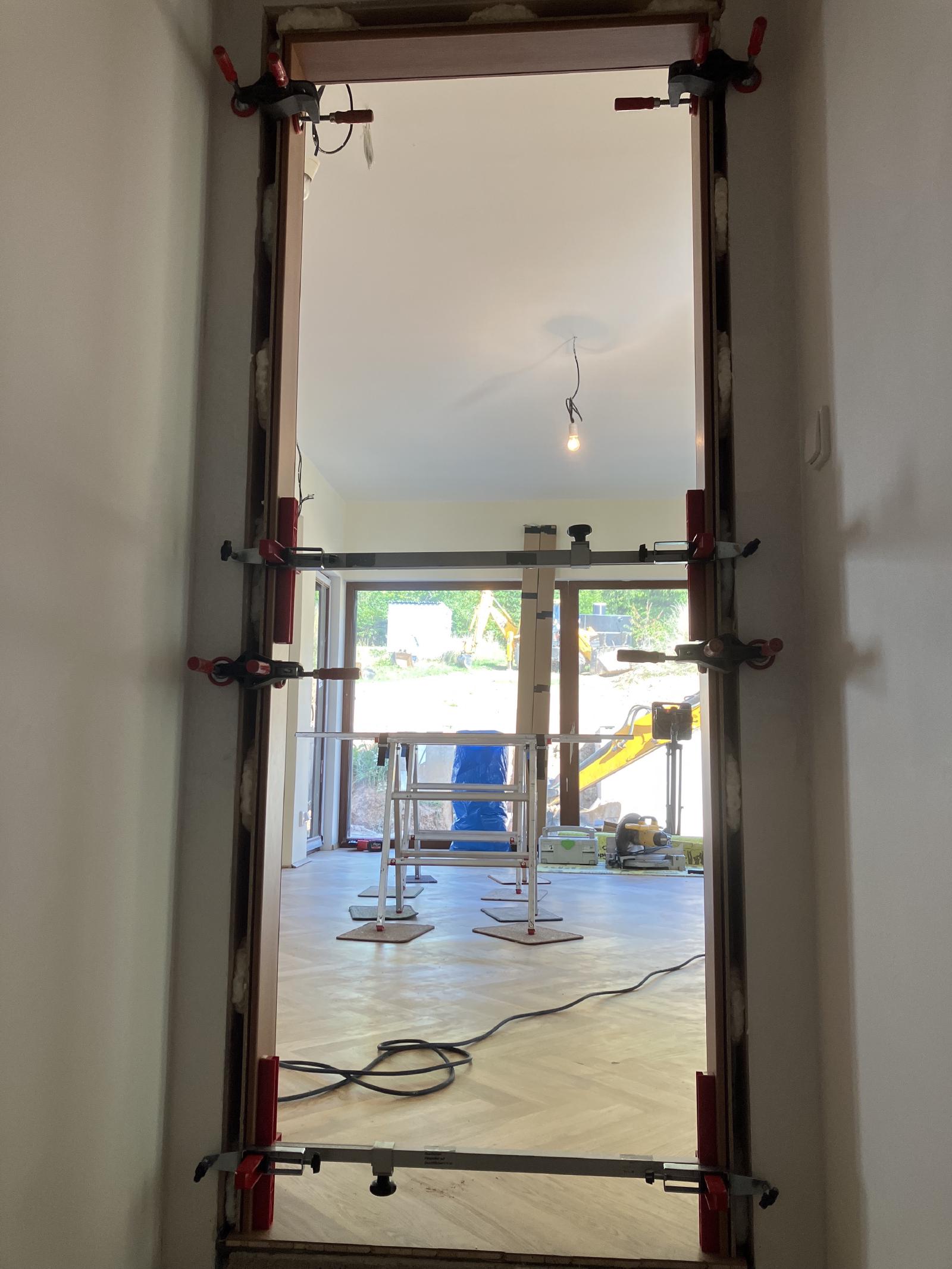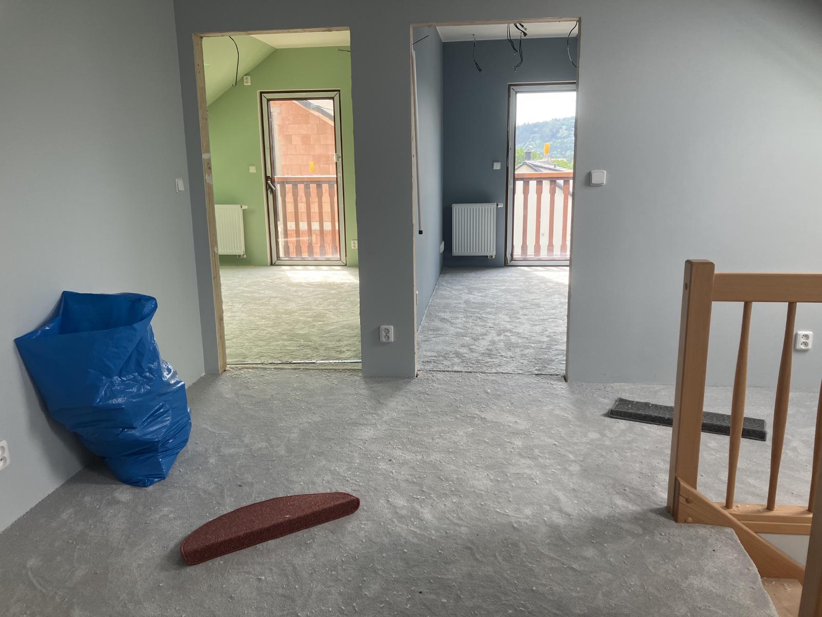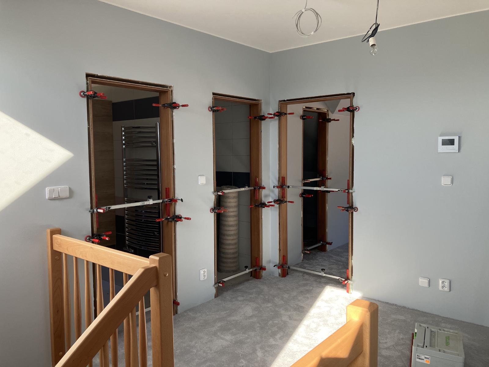 morning to install the upstairs carpets and all of the doors. When we arrived,
