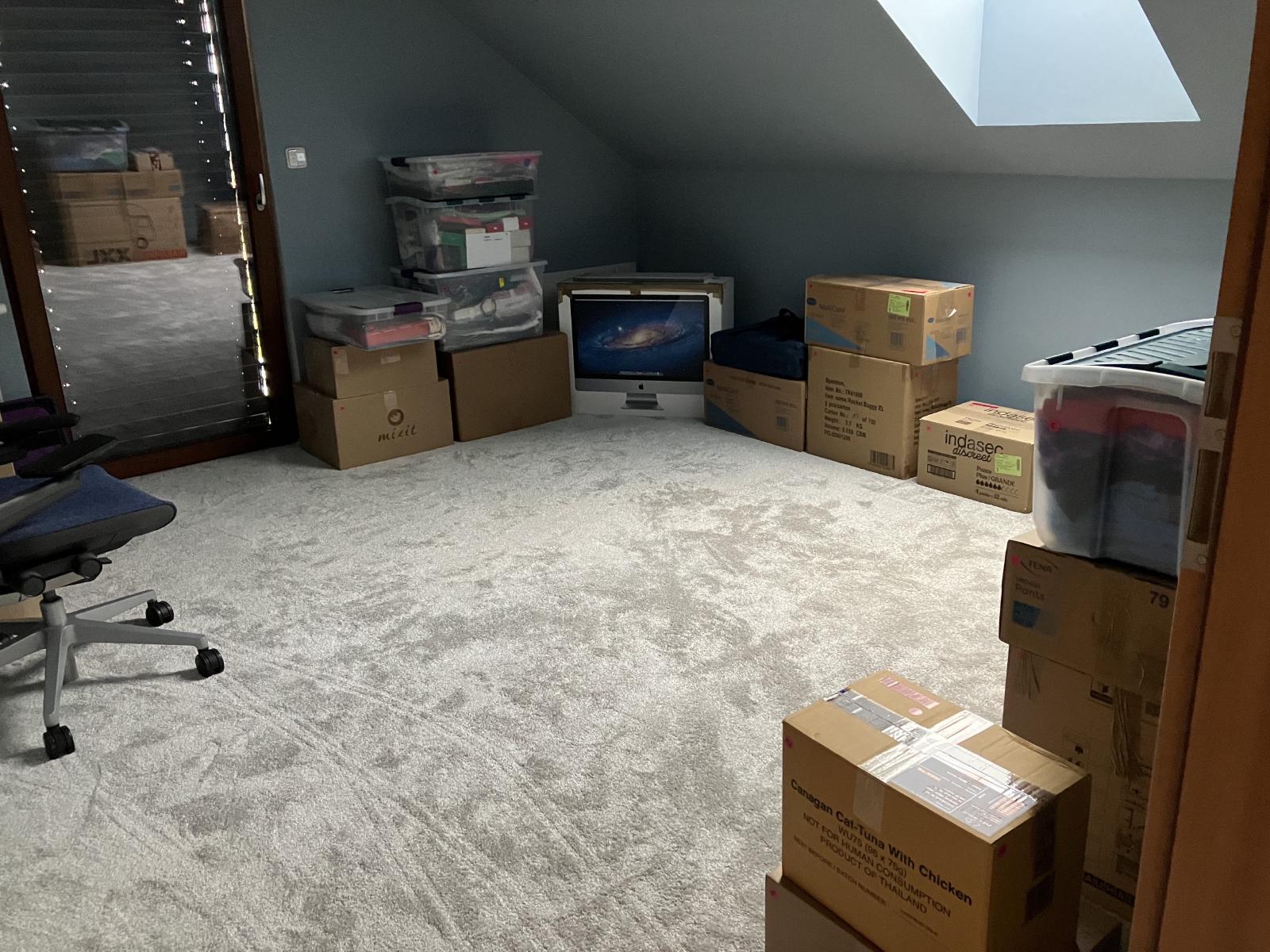 With the floors in, we were able to finally start moving in the boxes - some of which have been packed since January, when we still naively thought that the house would be ready to move into in February!