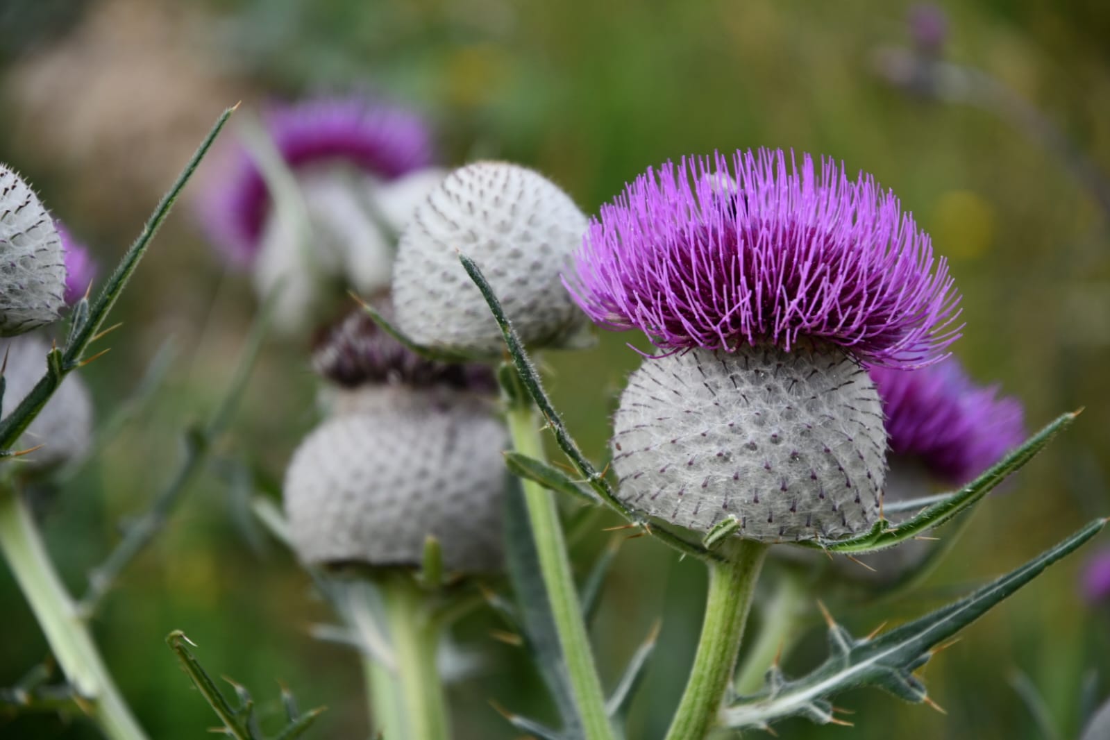 We ate wild blueberries and raspberries and saw thistles like this, growing