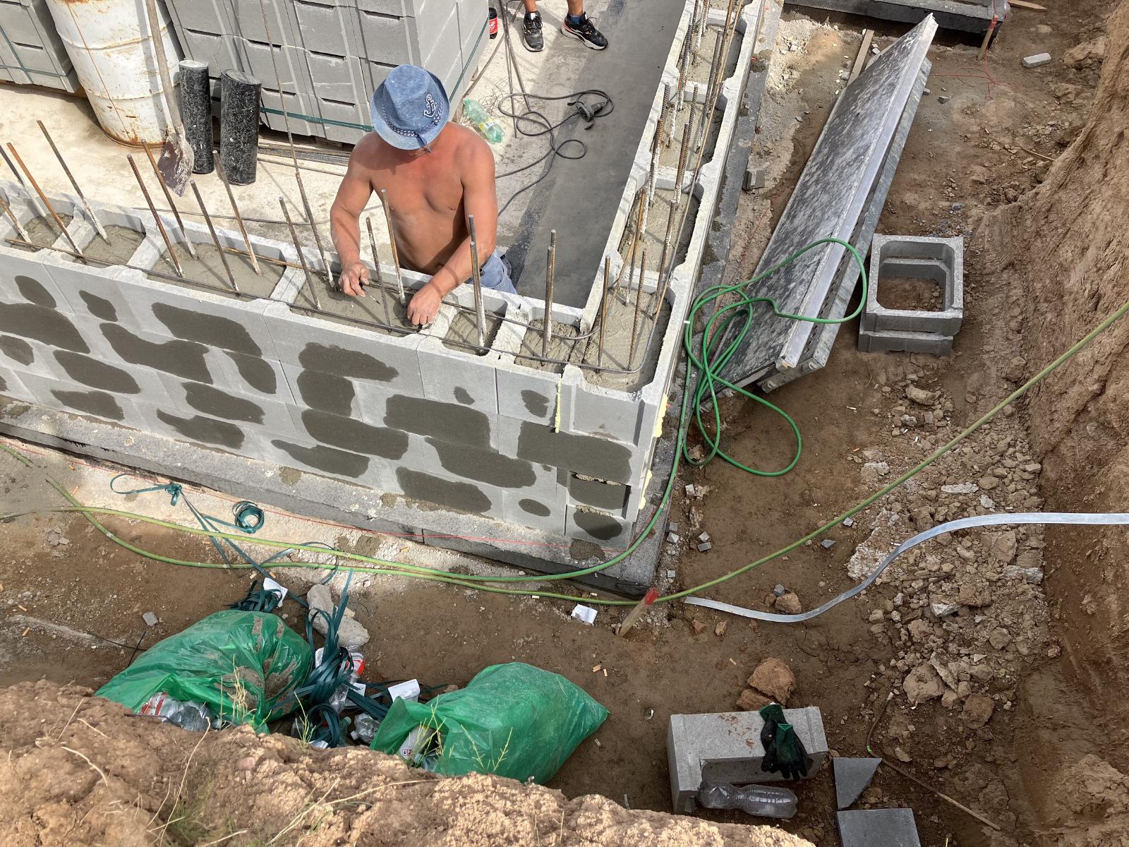 Our construction guys are super nice and I have been really enjoying watching the process that they use to build the basement. I think it pretty much takes a day per course of bricks. They are meticulous and level each and every brick, vertically and horizontally to make sure it is perfect.